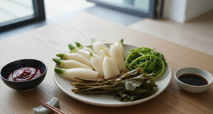 - 개두릅: 4월 말~5월 초 제철 / 진한 향과 강한 쓴맛 / 장아찌 요리 추천